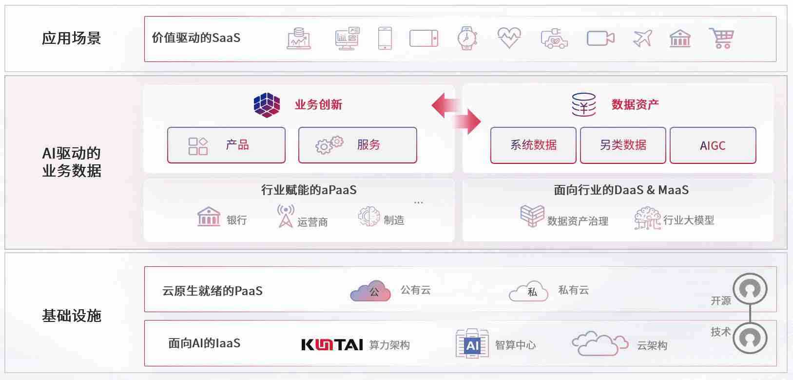 数字时代,,,围绕企业数字化转型的关键要素,,,xc sports数码开创性的提出数云融合战略和技术体系框架,,,着力在云原生、、、数字原生、、、AI原生和信创产业上架构产品和服务能力,,,,为处在不同数字化转型阶段的快消零售、、、、汽车、、、金融、、、医疗、、、、政企、、、、教育、、运营商等行业客户提供泛在的敏捷IT能力和融合的数据驱动能力,,,,构建跨界融合创新的数字业务场景和新业务模式,,助力企业级客户建立面向未来的核心能力和竞争优势,,全面推动社会的数字化、、智能化转型升级。。